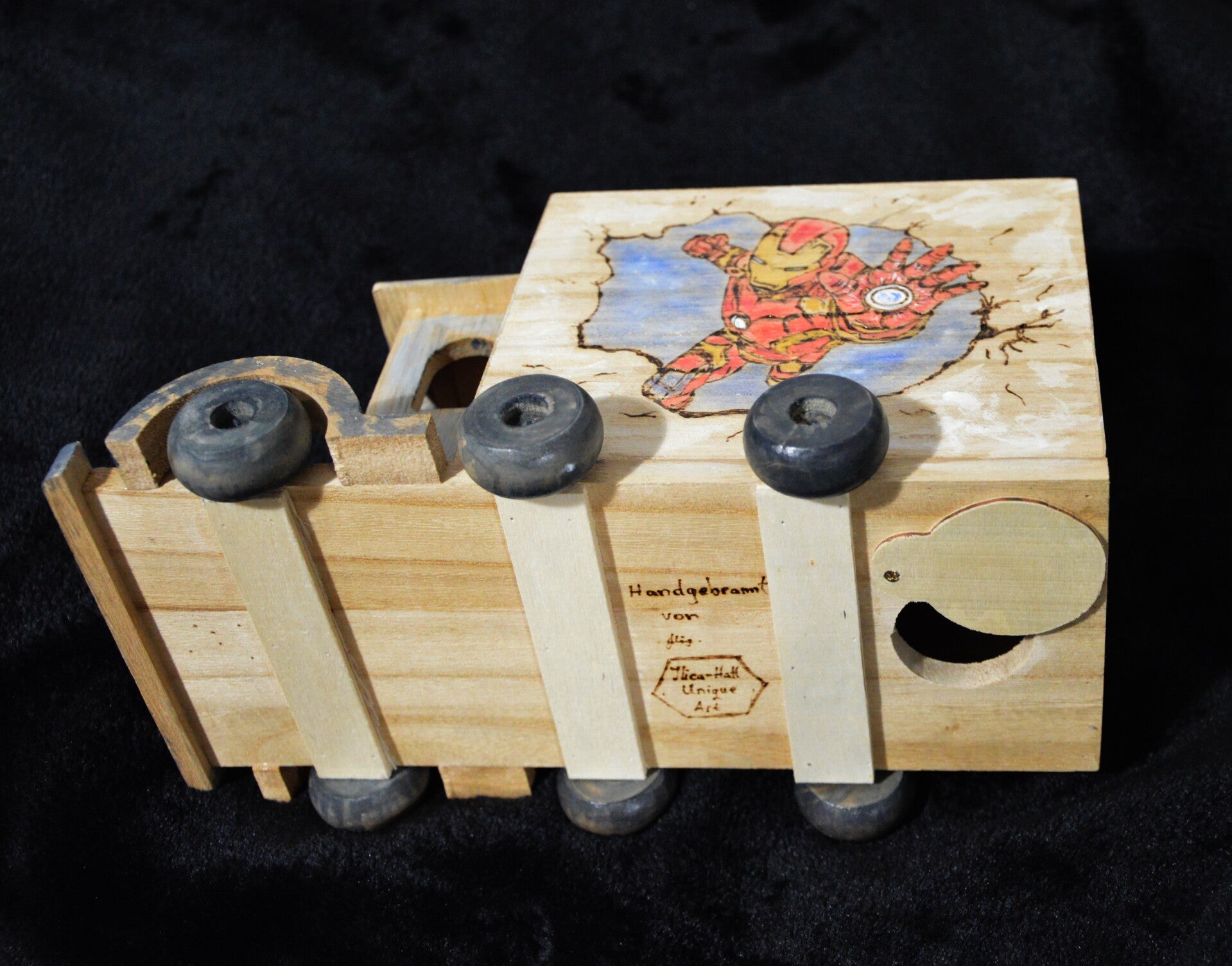 -Von Hand gebrannt (Brandmalerei) und bemalt auf Holz